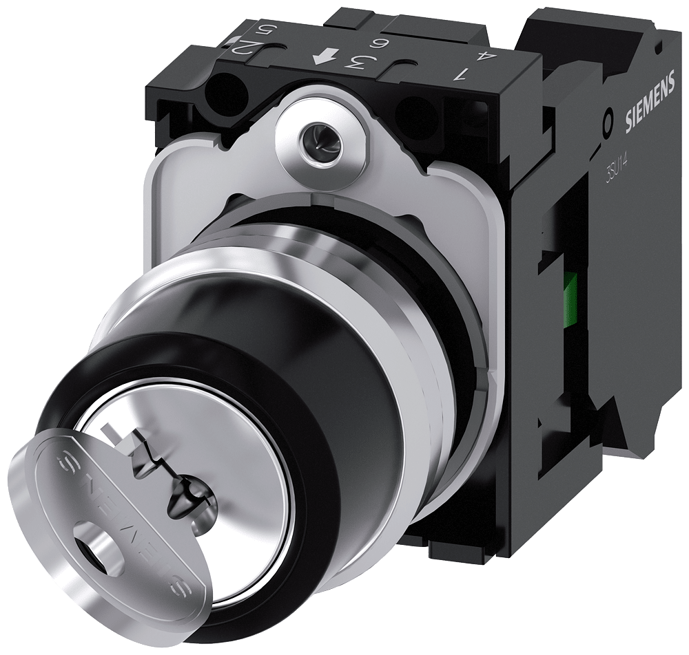 selettore a chiave RONIS, 22 mm, rotondo, in metallo, lucido, numero serratura SB30, con 2 chiavi, 2 posizioni di commutazione O-I, permanente, angolo di comando 90°, 10:30h/13:30h, estrazione chiave O+I, con supporto, 1 NO, morsetti a molla, possibili serrature speciali: SB31, 421, 455 Selettore a chiave SIRIUS ACT per elevati requisiti di sicurezza dell'accesso. Siemens offre, sotto il nome commerciale SIRIUS ACT, un portfolio esclusivo di dispositivi di comando e segnalazione con omologazioni di prodotto per il mercato mondiale in tre moderne serie di design in robusto metallo puro e plastica pregiata.L'innovativo concetto di innesto a scatto semplifica talmente il montaggio che per eseguirlo basta una sola mano e non servono attrezzi speciali. Per i fori di montaggio sono sufficienti semplici fori non scanalati, essendo già integrata una protezione antirotazione al 100 %.Grazie al grado di protezione elevato i robusti apparecchi sono adatti all'impiego industriale e in ambiente esterno. È persino possibile la pulizia con getto ad alta pressione. Né polvere, né oli, né liscivia possono comprometterne il funzionamento affidabile.Oltre che con il cablaggio standard, gli apparecchi possono essere collegati al controllore anche tramite PROFINET, AS-Interface oppure IO-Link. Potete cosìridurre il vostro onere di cablaggio, minimizzare le fonti di errore e ottenere maggiore flessibilità.Il configuratore online grafico supporta in modo confortevole la scelta e l'ordinazione di singoli apparecchi, pulsantiere e iscrizioni. È disponibile una documentazione completa (ad es. manuale, dati 3D, schema di collegamento). Esecuzioni fornibili: diversi sistemi di chiusura (Siemens, C; Siemens, B; RONIS; OMR; IKON), 2/3 posizioni di commutazione, comando permanente/ad impulso, diverse posizioni di estrazione chiave. Avvertenza: Apparecchio completo, fornitura incl. supporto e moduli. SIRIUS ACT - Performance in Action nel comando e nella segnalazione. Semplici da montare, altamente performanti, semplicemente perfetti.
