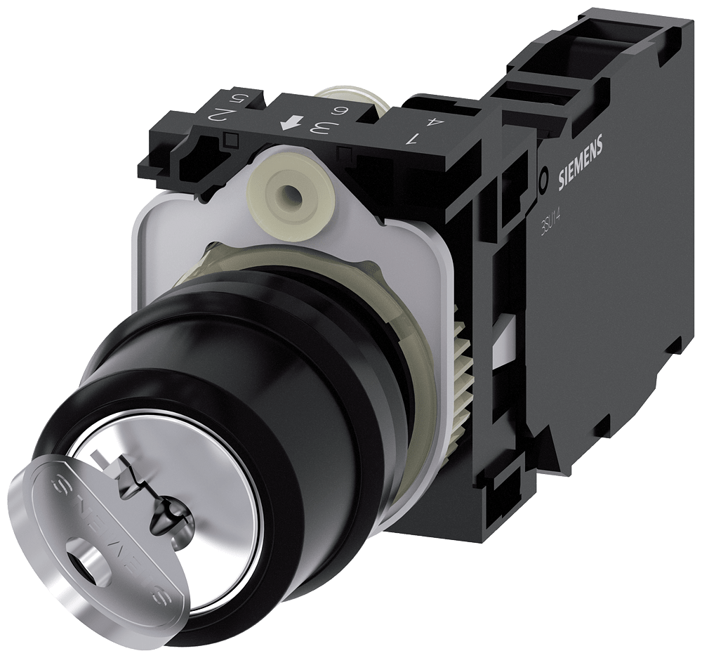 selettore a chiave RONIS, 22 mm, rotondo, in plastica, numero serratura SB30, con 2 chiavi, 2 posizioni di commutazione O-I, permanente, 10:30 h/13:30 h, estrazione chiave O+I, con supporto, 1 NO+1 NC, morsetto a vite, possibili serrature speciali: SB31, 421, 455 Selettore a chiave SIRIUS ACT per elevati requisiti di sicurezza dell'accesso. Siemens offre, sotto il nome commerciale SIRIUS ACT, un portfolio esclusivo di dispositivi di comando e segnalazione con omologazioni di prodotto per il mercato mondiale in tre moderne serie di design in robusto metallo puro e plastica pregiata.L'innovativo concetto di innesto a scatto semplifica talmente il montaggio che per eseguirlo basta una sola mano e non servono attrezzi speciali. Per i fori di montaggio sono sufficienti semplici fori non scanalati, essendo già integrata una protezione antirotazione al 100 %.Grazie al grado di protezione elevato i robusti apparecchi sono adatti all'impiego industriale e in ambiente esterno. È persino possibile la pulizia con getto ad alta pressione. Né polvere, né oli, né liscivia possono comprometterne il funzionamento affidabile.Oltre che con il cablaggio standard, gli apparecchi possono essere collegati al controllore anche tramite PROFINET, AS-Interface oppure IO-Link. Potete cosìridurre il vostro onere di cablaggio, minimizzare le fonti di errore e ottenere maggiore flessibilità.Il configuratore online grafico supporta in modo confortevole la scelta e l'ordinazione di singoli apparecchi, pulsantiere e iscrizioni. È disponibile una documentazione completa (ad es. manuale, dati 3D, schema di collegamento). Esecuzioni fornibili: diversi sistemi di chiusura (Siemens, C; Siemens, B; RONIS; OMR; IKON), 2/3 posizioni di commutazione, comando permanente/ad impulso, diverse posizioni di estrazione chiave. Avvertenza: Apparecchio completo, fornitura incl. supporto e moduli. SIRIUS ACT - Performance in Action nel comando e nella segnalazione. Semplici da montare, altamente performanti, semplicemente perfetti.