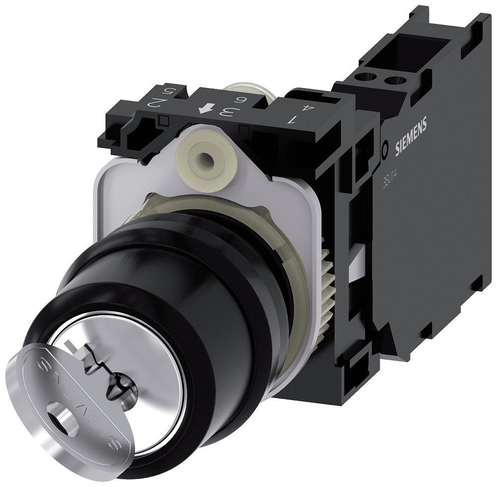 selettore a chiave RONIS, 22 mm, rotondo, in plastica, numero serratura SB30, con 2 chiavi, 2 posizioni di commutazione O-I, permanente, 10:30 h/13:30 h, estrazione chiave O+I, con supporto, 1 NO+1 NC, morsetti a molla, possibili serrature speciali: SB31, 421, 455 Selettore a chiave SIRIUS ACT per elevati requisiti di sicurezza dell'accesso. Siemens offre, sotto il nome commerciale SIRIUS ACT, un portfolio esclusivo di dispositivi di comando e segnalazione con omologazioni di prodotto per il mercato mondiale in tre moderne serie di design in robusto metallo puro e plastica pregiata.L'innovativo concetto di innesto a scatto semplifica talmente il montaggio che per eseguirlo basta una sola mano e non servono attrezzi speciali. Per i fori di montaggio sono sufficienti semplici fori non scanalati, essendo già integrata una protezione antirotazione al 100 %.Grazie al grado di protezione elevato i robusti apparecchi sono adatti all'impiego industriale e in ambiente esterno. È persino possibile la pulizia con getto ad alta pressione. Né polvere, né oli, né liscivia possono comprometterne il funzionamento affidabile.Oltre che con il cablaggio standard, gli apparecchi possono essere collegati al controllore anche tramite PROFINET, AS-Interface oppure IO-Link. Potete cosìridurre il vostro onere di cablaggio, minimizzare le fonti di errore e ottenere maggiore flessibilità.Il configuratore online grafico supporta in modo confortevole la scelta e l'ordinazione di singoli apparecchi, pulsantiere e iscrizioni. È disponibile una documentazione completa (ad es. manuale, dati 3D, schema di collegamento). Esecuzioni fornibili: diversi sistemi di chiusura (Siemens, C; Siemens, B; RONIS; OMR; IKON), 2/3 posizioni di commutazione, comando permanente/ad impulso, diverse posizioni di estrazione chiave. Avvertenza: Apparecchio completo, fornitura incl. supporto e moduli. SIRIUS ACT - Performance in Action nel comando e nella segnalazione. Semplici da montare, altamente performanti, semplicemente perfetti.