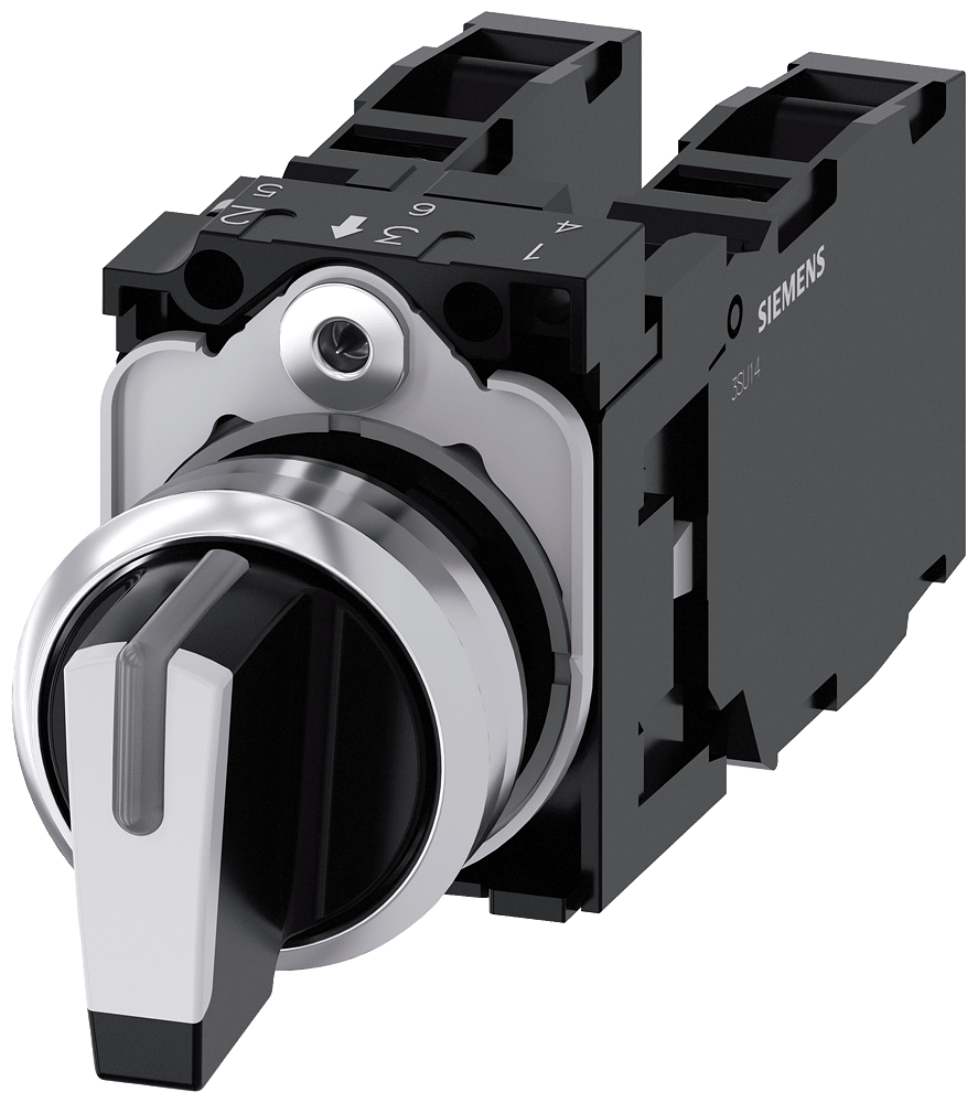 SIEMENS - Selettore, illuminabile, 22 mm, rotondo, in metallo lucido, bianco, 2x1NO+1NC 3SU11502BM601LA0