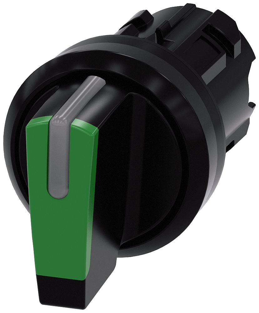 selettore, illuminabile, 22 mm, rotondo, in plastica, verde, selettore, breve, 3 posizioni di commutazione I-O-II, permanente, angolo di commutazione 2x45°, 10:30 h/12 h/13:30 h Selettore SIRIUS ACT per la commutazione e il comando di utilizzatori elettrici. Siemens offre, sotto il nome commerciale SIRIUS ACT, un portfolio esclusivo di dispositivi di comando e segnalazione con omologazioni di prodotto per il mercato mondiale in tre moderne serie di design in robusto metallo puro e plastica pregiata.L'innovativo concetto di innesto a scatto semplifica talmente il montaggio che per eseguirlo basta una sola mano e non servono attrezzi speciali. Per i fori di montaggio sono sufficienti semplici fori non scanalati, essendo già integrata una protezione antirotazione al 100 %.Grazie al grado di protezione elevato i robusti apparecchi sono adatti all'impiego industriale e in ambiente esterno. È persino possibile la pulizia con getto ad alta pressione. Né polvere, né oli, né liscivia possono comprometterne il funzionamento affidabile.Oltre che con il cablaggio standard, gli apparecchi possono essere collegati al controllore anche tramite PROFINET, AS-Interface oppure IO-Link. Potete così ridurre il vostro onere di cablaggio, minimizzare le fonti di errore e ottenere maggiore flessibilità.Il configuratore online grafico supporta in modo confortevole la scelta e l'ordinazione di singoli apparecchi, pulsantiere e iscrizioni. È disponibile una documentazione completa (ad es. manuale, dati 3D, schema di collegamento). Esecuzioni fornibili: più colori, 2-4 posizioni di commutazione, operatore corto/lungo o manopola, luminoso/non luminoso (illuminazione anche applicabile a posteriori), comando permanente/ad impulso. Avvertenza: Apparecchio singolo, supporti e moduli devono essere ordinati separatamente. SIRIUS ACT - Performance in Action nel comando e nella segnalazione. Semplici da montare, altamente performanti, semplicemente perfetti.