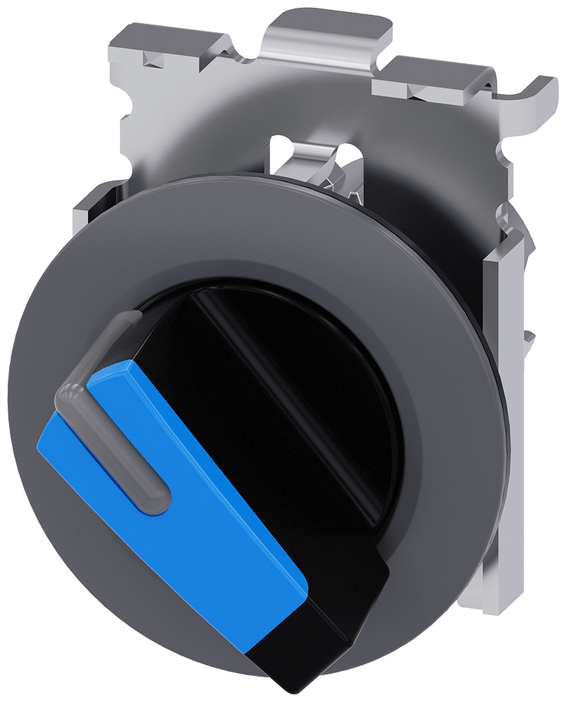 selettore illuminabile, 30 mm, rotondo, in metallo opaco, blu, selettore, corto anello frontale per montaggio piatto, 2 posizioni di commutazione O-I, permanente, angolo di intervento 90°, 10:30 h/13:30 h Selettore SIRIUS ACT per la commutazione e il comando di utilizzatori elettrici. Siemens offre, sotto il nome commerciale SIRIUS ACT, un portfolio esclusivo di dispositivi di comando e segnalazione con omologazioni di prodotto per il mercato mondiale in tre moderne serie di design in robusto metallo puro e plastica pregiata.L'innovativo concetto di innesto a scatto semplifica talmente il montaggio che per eseguirlo basta una sola mano e non servono attrezzi speciali. Per i fori di montaggio sono sufficienti semplici fori non scanalati, essendo già integrata una protezione antirotazione al 100 %.Grazie al grado di protezione elevato i robusti apparecchi sono adatti all'impiego industriale e in ambiente esterno. È persino possibile la pulizia con getto ad alta pressione. Né polvere, né oli, né liscivia possono comprometterne il funzionamento affidabile.Oltre che con il cablaggio standard, gli apparecchi possono essere collegati al controllore anche tramite PROFINET, AS-Interface oppure IO-Link. Potete così ridurre il vostro onere di cablaggio, minimizzare le fonti di errore e ottenere maggiore flessibilità.Il configuratore online grafico supporta in modo confortevole la scelta e l'ordinazione di singoli apparecchi, pulsantiere e iscrizioni. È disponibile una documentazione completa (ad es. manuale, dati 3D, schema di collegamento). Esecuzioni fornibili: più colori, 2-4 posizioni di commutazione, operatore corto/lungo o manopola, luminoso/non luminoso (illuminazione anche applicabile a posteriori), comando permanente/ad impulso. Avvertenza: Apparecchio singolo, supporti e moduli devono essere ordinati separatamente. SIRIUS ACT - Performance in Action nel comando e nella segnalazione. Semplici da montare, altamente performanti, semplicemente perfetti.