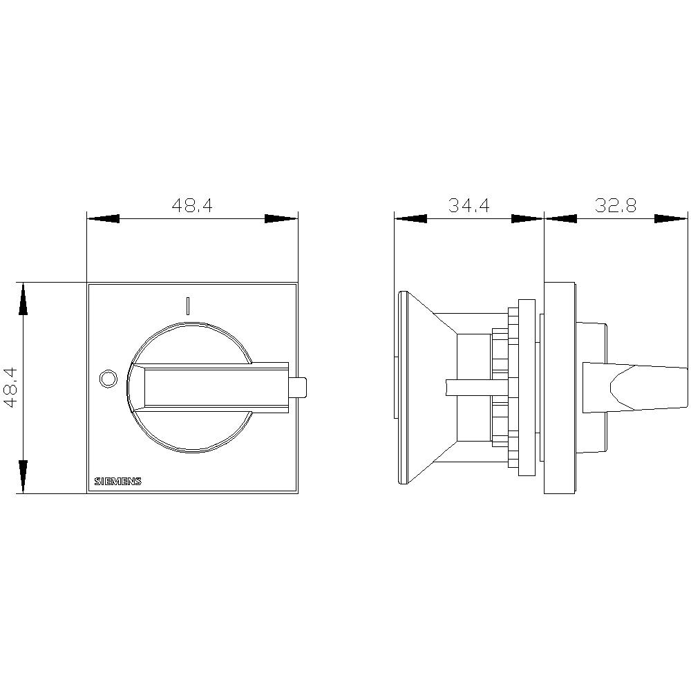 SIEMENS - Selettore, rosso/giallo 48x48 mm, fissaggio frontale, fissaggio su foro centrale, 22,5 mm