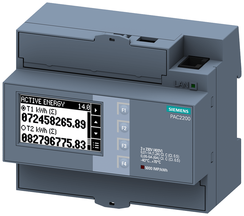 SIEMENS - SENTRON, dispositivo di misura 7KM PAC2200, trifase, 5 A, montaggio su guida DIN, Modbus TCP 7KM22002EA301EA1