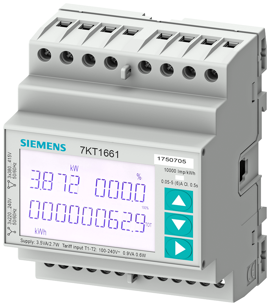 SIEMENS - SENTRON, dispositivo di misura 7KT PAC1600, trifase, 5 A, montaggio su guida DIN, S0, MID 7KT1673