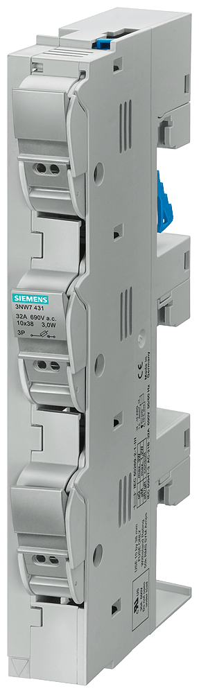 SENTRON, portafusibile, Classe CC, a 3 poli, In: 30 A, Un AC: 600 V, per sistema di sbarre collettrici 8US 60mm, rispettare le norme di installazione nazionali! Sistemi di fusibili UL Class CC e Class J. Il sistema di fusibili 3NW di Siemens, quale parte integrante importante dei componenti di protezione SENTRON per l'installazione elettrica, offre una protezione efficace per le persone, gli apparecchi e gli impianti grazie alla disinserzione sicura in caso di sovraccarico e cortocircuito. I fusibili Class CC vengono impiegati per applicazioni di "Branch Circuit Protection". Le cartucce fusibili J vengono impiegate per applicazioni di "Branch Circuit Protection" enel "Feeder Circuit". I fusibili NW di Siemens si contraddistinguono soprattutto per le seguenti caratteristiche: 1. Esportazione facilitata grazie all'omologazione secondo UL e CSA per applicazioni tipiche nel mercato nordamericano. 2. La forma costruttiva moderna con protezione contro i contatti accidentali garantisce una installazione sicura. 3. Possibilità di sostituzione dei fusibili dei portafusibili sotto tensione