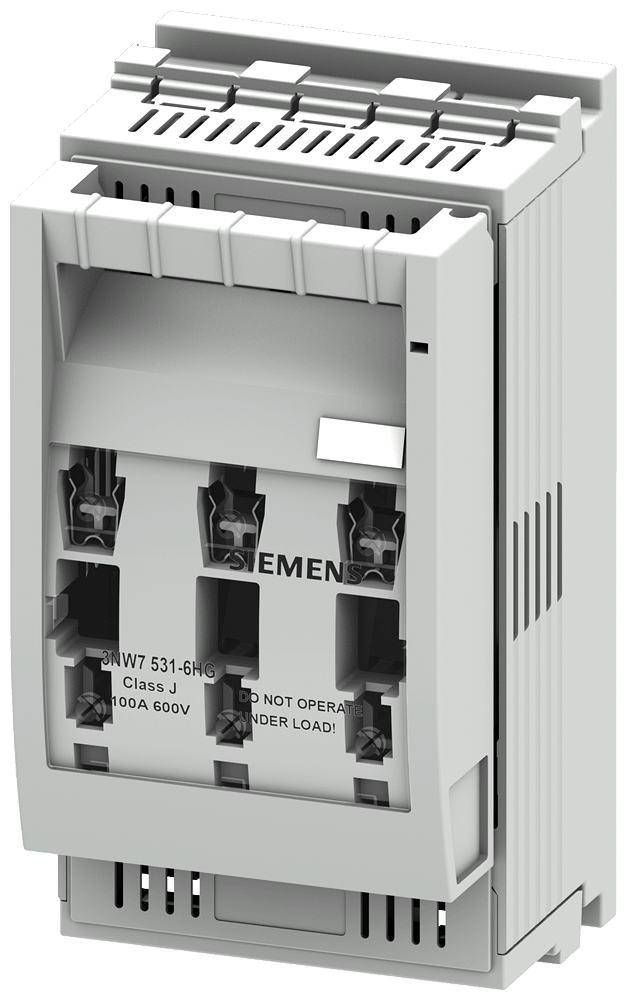 SENTRON, portafusibile, Classe J, a 3 poli, In: 100 A, Un AC: 600 V, montaggio su piastra di montaggio, rispettare le norme di installazione nazionali! Sistemi di fusibili UL Class CC e Class J. Il sistema di fusibili 3NW di Siemens, quale parte integrante importante dei componenti di protezione SENTRON per l'installazione elettrica, offre una protezione efficace per le persone, gli apparecchi e gli impianti grazie alla disinserzione sicura in caso di sovraccarico e cortocircuito. I fusibili Class CC vengono impiegati per applicazioni di "Branch Circuit Protection". Le cartucce fusibili J vengono impiegate per applicazioni di "Branch Circuit Protection" enel "Feeder Circuit". I fusibili NW di Siemens si contraddistinguono soprattutto per le seguenti caratteristiche: 1. Esportazione facilitata grazie all'omologazione secondo UL e CSA per applicazioni tipiche nel mercato nordamericano. 2. La forma costruttiva moderna con protezione contro i contatti accidentali garantisce una installazione sicura. 3. Possibilità di sostituzione dei fusibili dei portafusibili sotto tensione