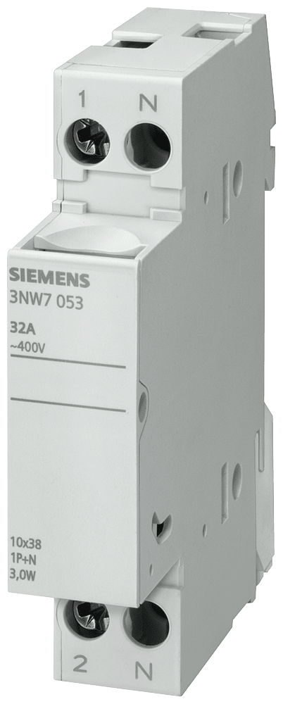 SIEMENS - SENTRON, portafusibili per fusibili cilindrici 10 x 38 mm, 1P+N, In: 32 A, Un AC: 690 V 3NW7053
