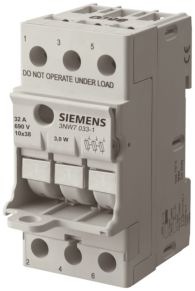 SIEMENS - SENTRON, portafusibili per fusibili cilindrici, 10 x 38 mm, a 3 poli, In: 32 A, Un AC: 690 V 3NW70331