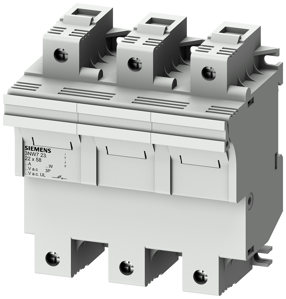 SIEMENS - SENTRON, portafusibili per fusibili cilindrici, 22 x 58 mm, a 3 poli, In: 100 A, Un AC: 690 V 3NW7232
