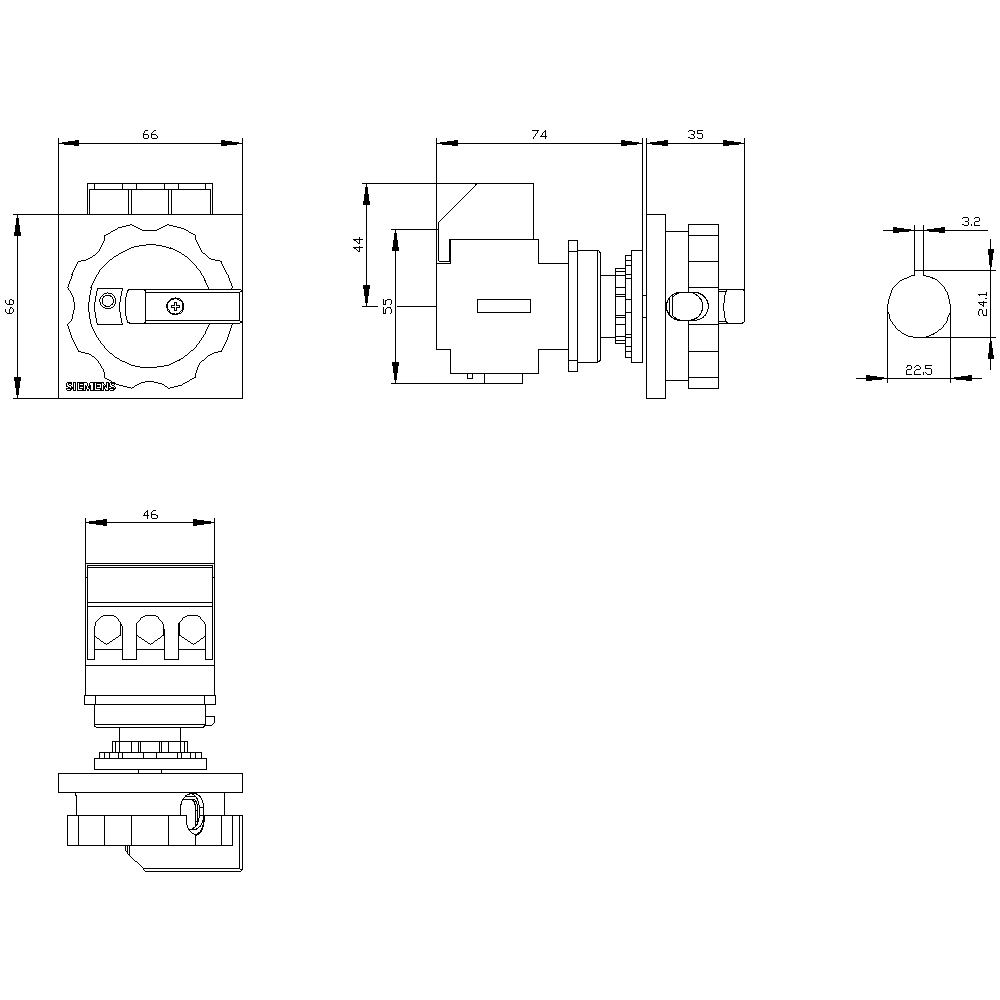 SIEMENS - SENTRON, sezionatore sottocarico 3LD, interruttore di OFF di emergenza, a 3 poli, Iu: 32 A 3LD22540TK53