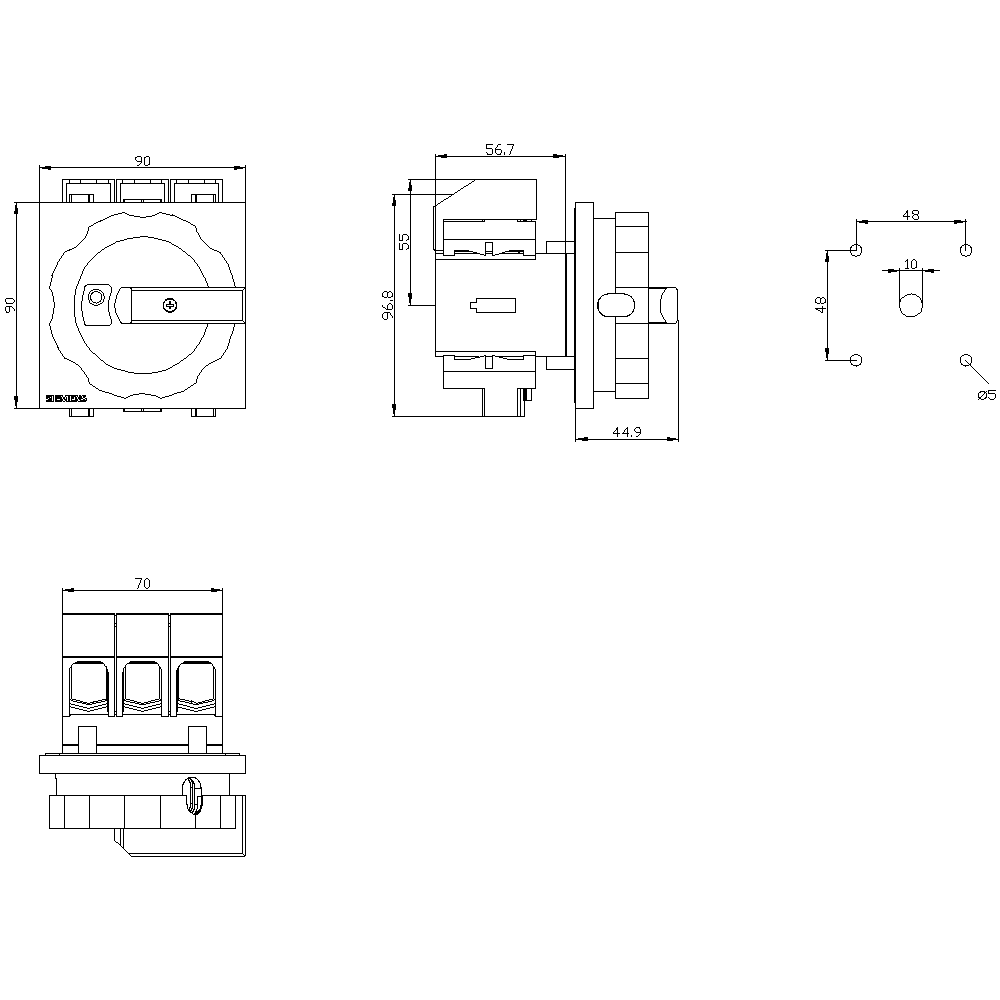 SIEMENS - SENTRON, sezionatore sottocarico 3LD5 UL, interruttore principale, a 3 poli, approvato, 3LD52200TK11