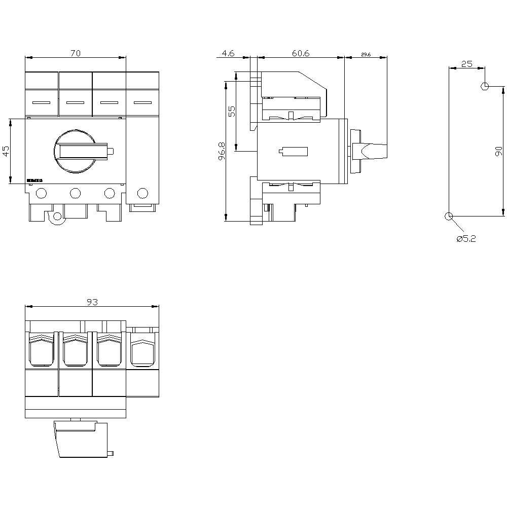 SIEMENS - SENTRON, sezionatore sottocarico 3LD5 UL, interruttore principale, a 4 poli, approvato, 3LD52000TL11