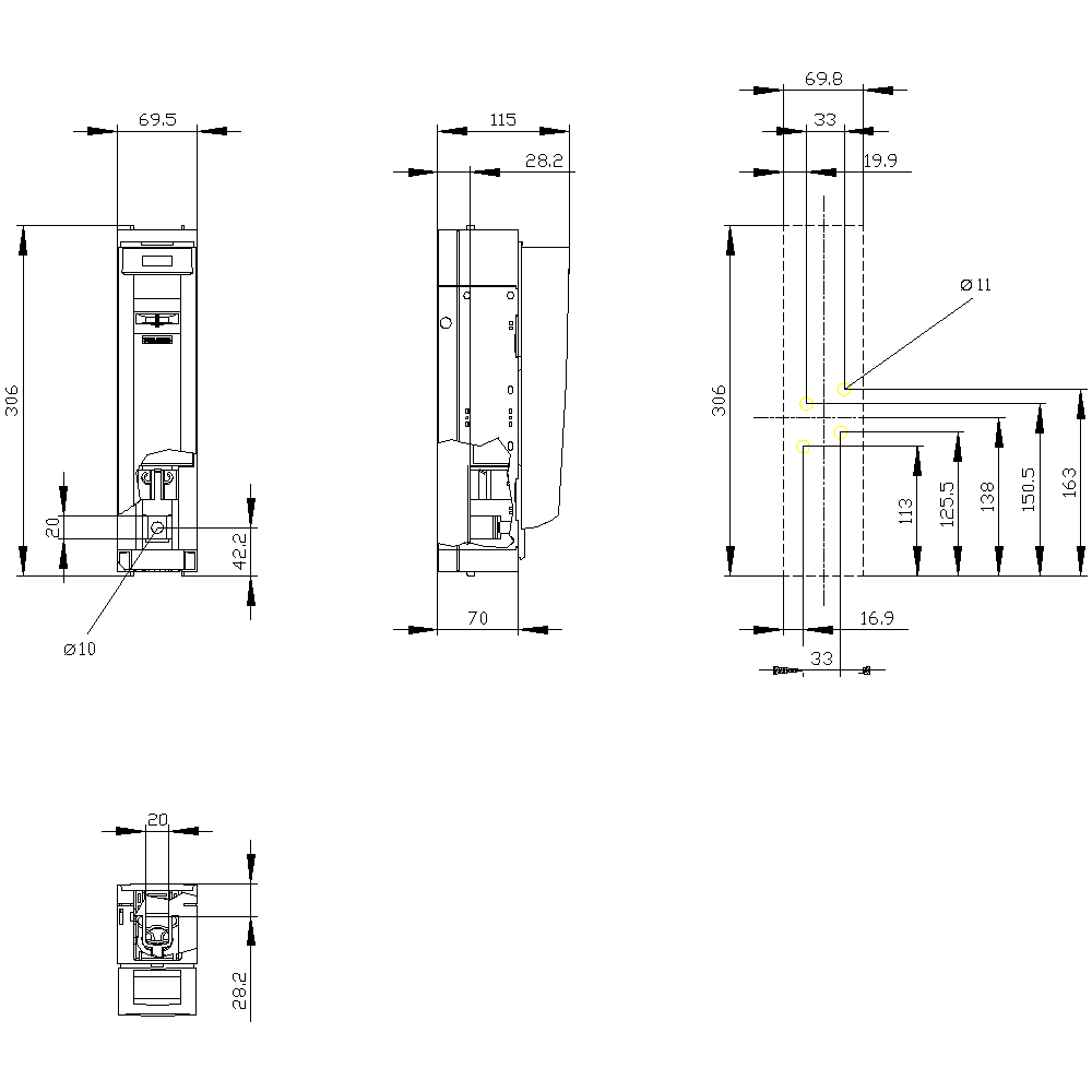 SIEMENS - SENTRON, Sezionatore sottocarico a fusibili 3NP1, a 1 polo, NH1, 250 A 3NP11411DA20