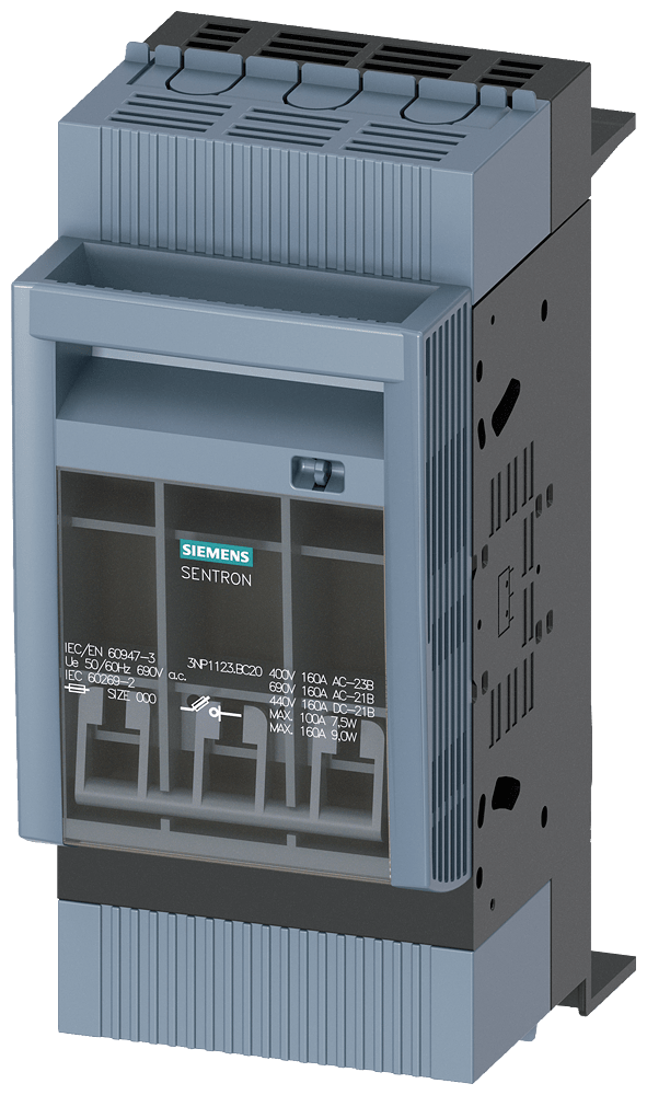 SIEMENS - SENTRON, Sezionatore sottocarico a fusibili 3NP1, a 3 poli, NH000, 160 A 3NP11231BC20