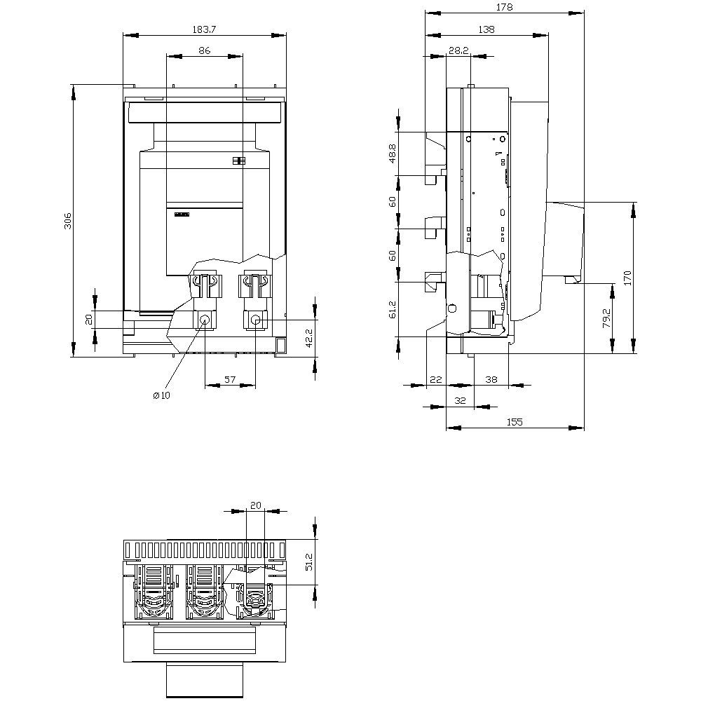 SIEMENS - SENTRON, Sezionatore sottocarico a fusibili 3NP1, a 3 poli, NH1, 250 A 3NP11431JC22