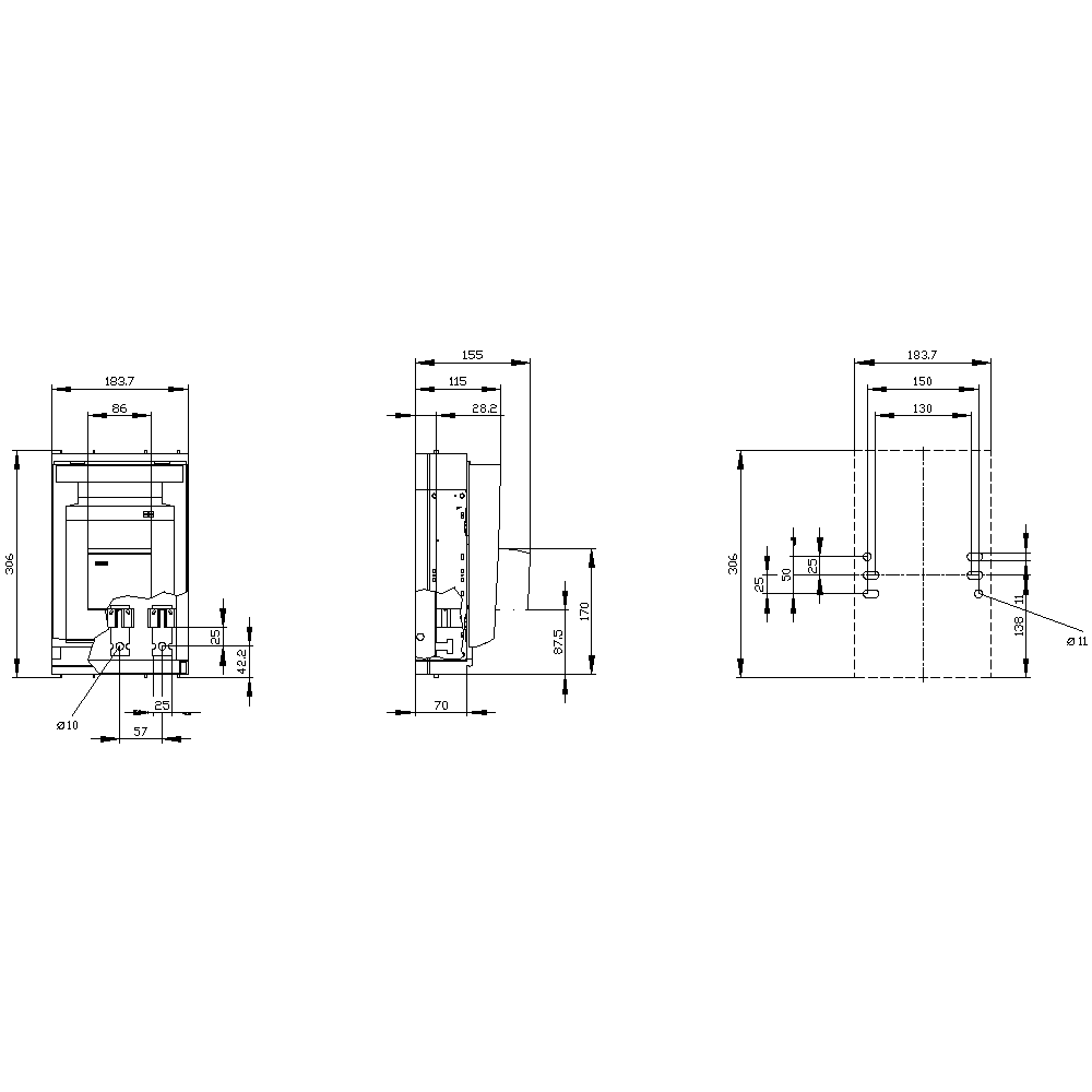 SIEMENS - SENTRON, Sezionatore sottocarico a fusibili 3NP1, a 3 poli, NH1, 250 A
