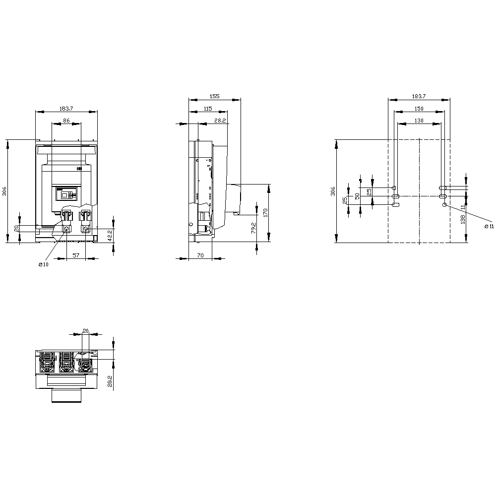 SIEMENS - SENTRON, Sezionatore sottocarico a fusibili 3NP1, a 3 poli, NH1, 250 A 3NP11431DA23