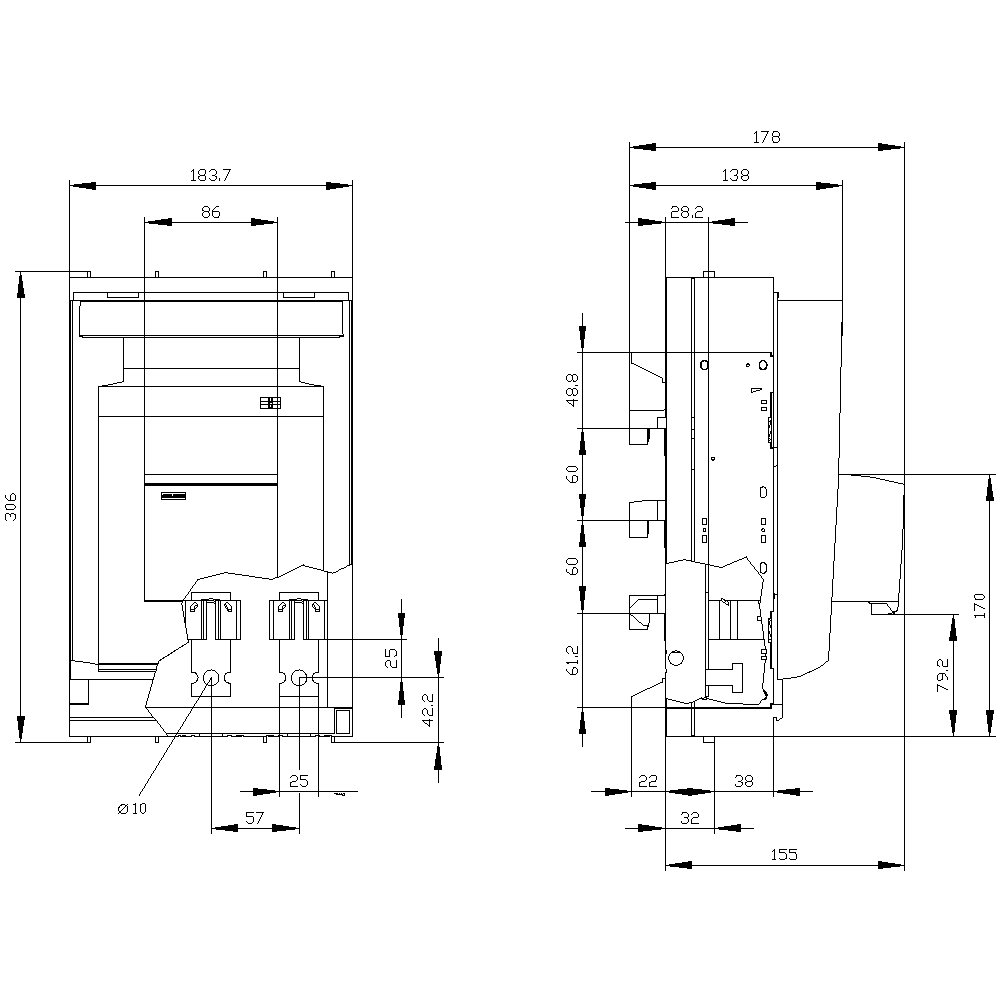 SIEMENS - SENTRON, Sezionatore sottocarico a fusibili 3NP1, a 3 poli, NH1, 250 A 3NP11431JC12