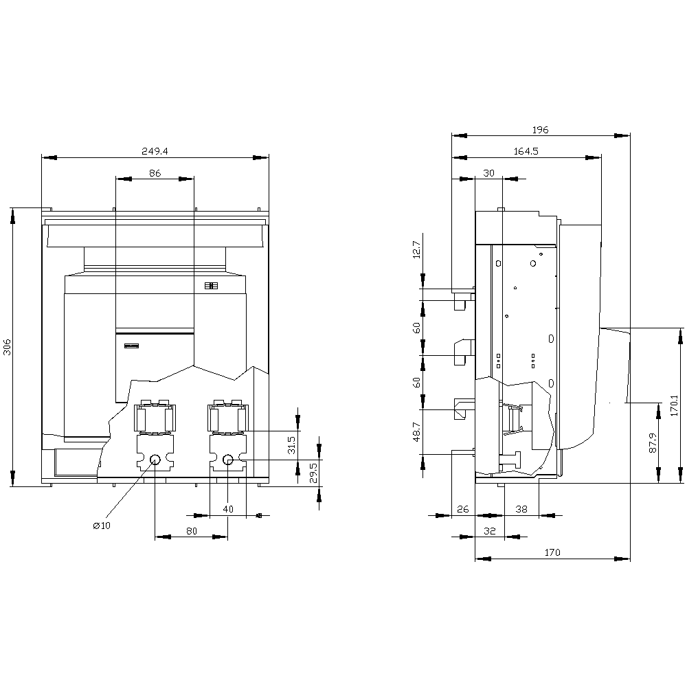 SIEMENS - SENTRON, Sezionatore sottocarico a fusibili 3NP1, a 3 poli, NH3, 630 A 3NP11631BC14