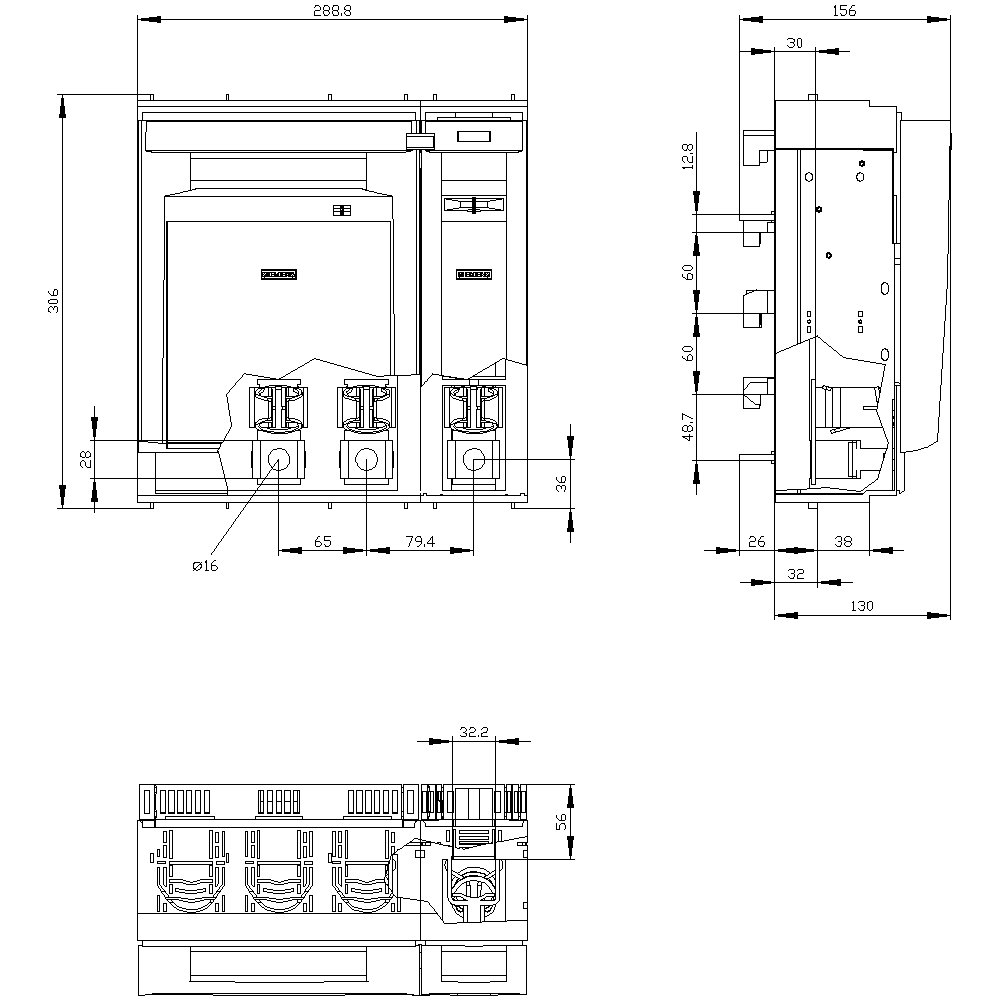 SIEMENS - SENTRON, Sezionatore sottocarico a fusibili 3NP1, a 4 poli, NH2, 400 A 3NP11541BC20
