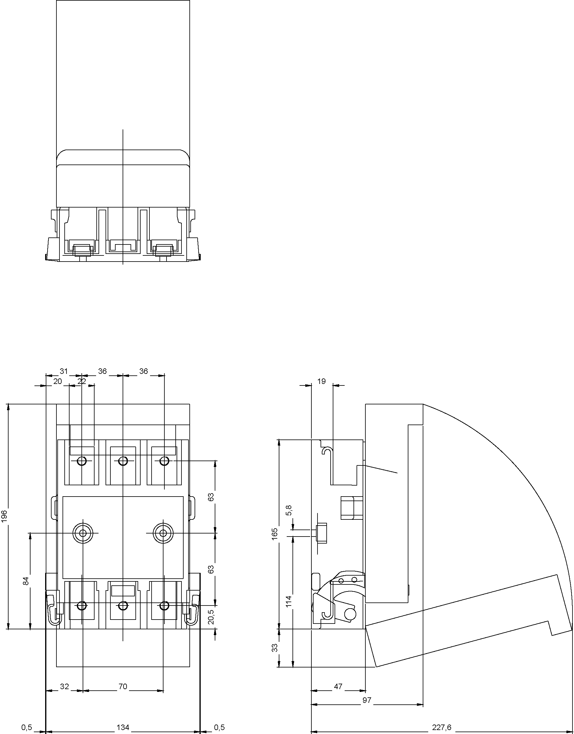 SENTRON, sezionatore sottocarico a fusibili 3NP5, a 3 poli, NH00, 160 A, per montaggio e installazione su piastra di montaggio, con inserzione rapida, morsetto a staffa Sezionatori sottocarico a fusibili 3NP fino a 630 A con protezione delle persone e degli impianti migliorata e comoda tecnica di collegamento. I sezionatori sottocarico a fusibili proteggono gli impianti nell'industria o nell'infrastruttura da sovraccarico e cortocircuito e sono adatti all'impiego in tutti i settori. La protezione avvolgente e contro i contatti accidentali presente come standard nella nuova serie Sentron 3NP1 impedisce che l'utente possa toccare parti conduttrici di corrente durante il montaggio dei sistemi di sbarre collettrici, persino in caso di accesso dal lato posteriore. Inoltre, l'utente può riconoscere facilmente attraverso la grande finestra di ispezione i fusibili impiegati. I sezionatori sottocarico a fusibili 3NP di Siemens si contraddistinguono soprattutto per le seguenti caratteristiche: 1. Massima flessibilità grazie alla costruzione modulare e agli accessori omogenei. 2. Idoneità al fissaggio su base, guida DIN e sistema di sbarre collettrici Siemens 8US 3. Funzione elettronica di controllo fusibili incl. controllo di rete. 4. Cinque grandezze costruttive da 100 A a 630 A e fino al grado di protezione IP40. 5. Modifica rapida e sicura per l'uscita cavi in alto / in basso. 6. Possibilità di stabilire in modo flessibile i punti di commutazione del blocchetto di contatti ausiliari (in contemporanea o in anticipo). 7. Possibilità di chiusura a lucchetto e piombatura.