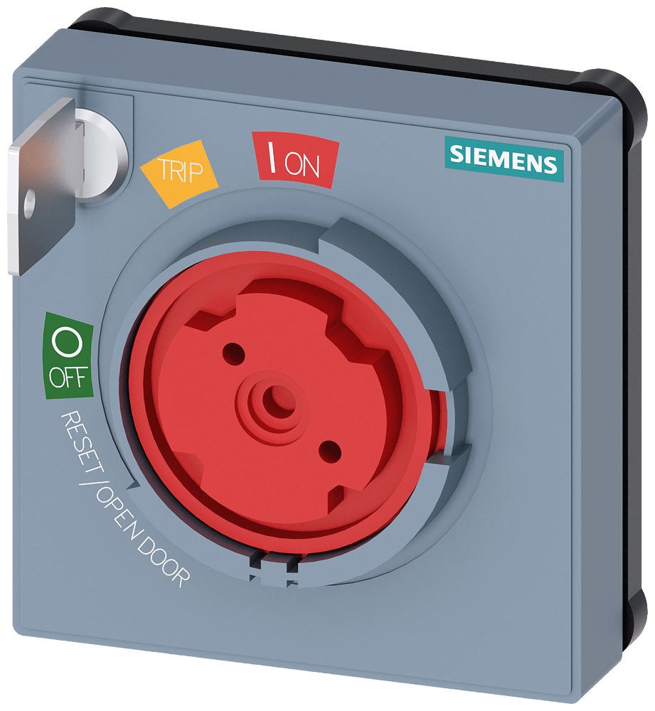 serratura a cilindro KABA con mostrina frontale, standard con posizione di apertura della porta chiave numero 2 Accessori per: comando rotativo bloccoporta 3VA 3VA5/6 125/150/250/400/600 Comandi manuali per un comodo utilizzo dell'interruttore automatico scatolato 3VA. Disponibilità come comando rotativo frontale, per porta e parete laterale con diverse possibilità di chiusura a chiave e con interblocco Le manopole sono disponibili nelle varianti standard e ARRESTO DI EMERGENZA, ciascuna con o senza kit di illuminazione. Interruttori automatici scatolati SENTRON 3VA - Un sistema. Per tutte le applicazioni.