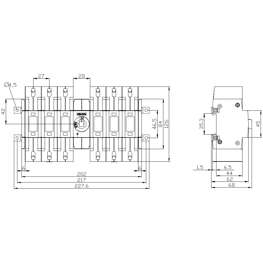SIEMENS - Sezionatore sottocarico 125 A grand. costr. 2, a 6 poli DC, comando frontale centrale, apparecchio di base 3KD32602NE200
