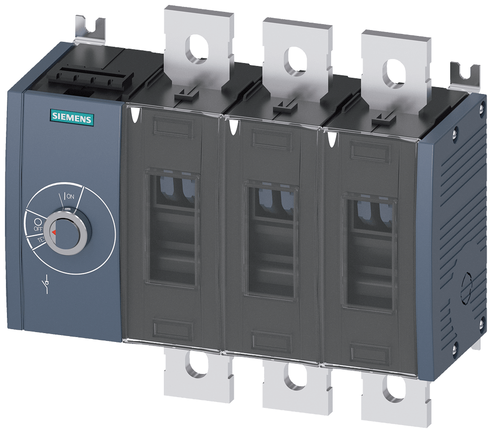 SIEMENS - Sezionatore sottocarico 500 A, grand. costr. 4, a 3 poli, comando laterale a sinistra, apparecchio di base