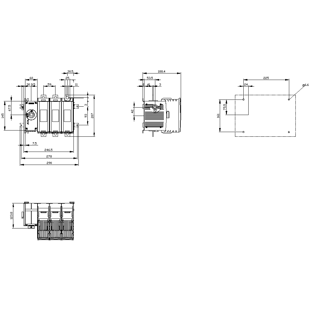 SIEMENS - Sezionatore sottocarico con fusibile 250 A, grand. costr. 3, a 3 poli, per fusibile NH grand. 0