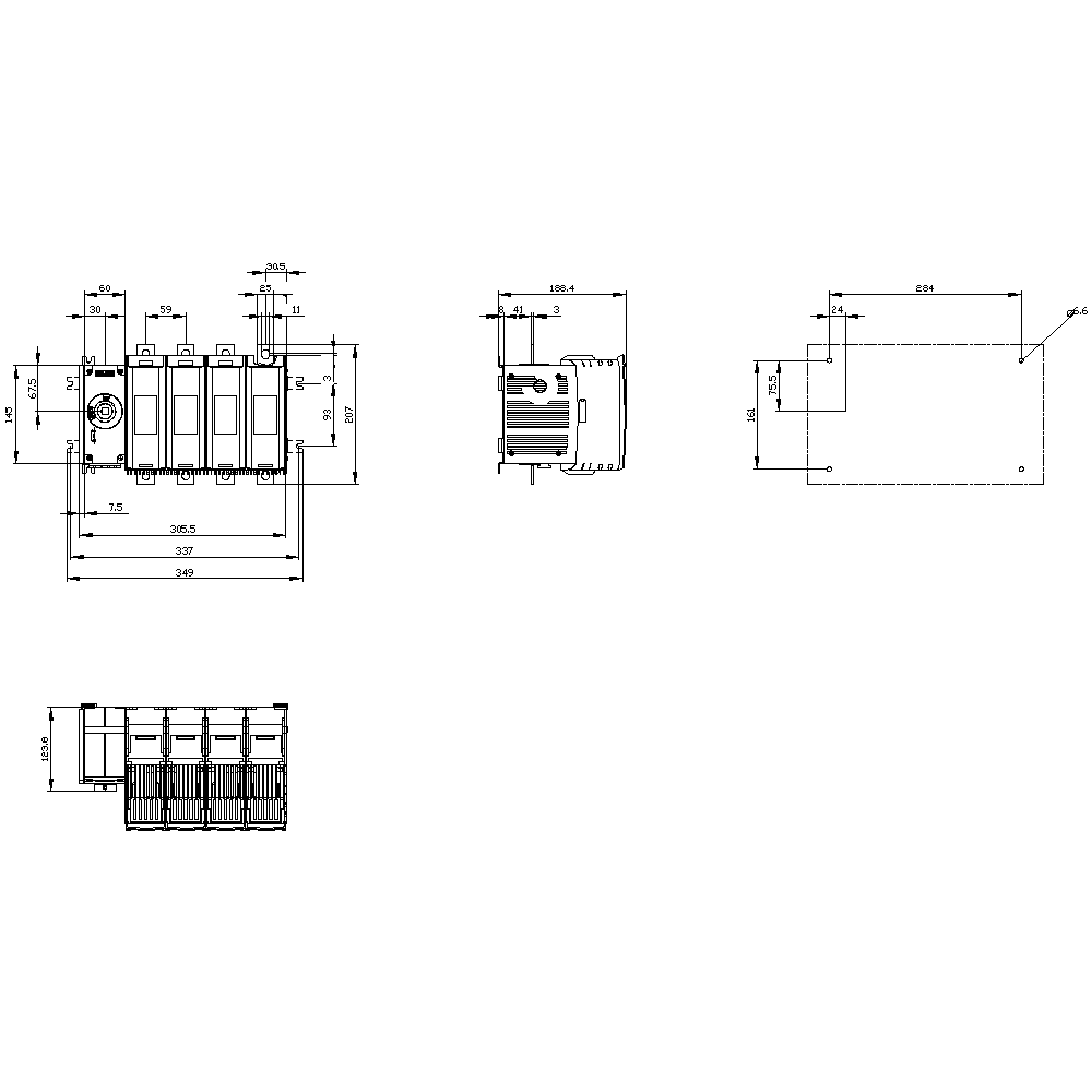 SIEMENS - Sezionatore sottocarico con fusibile 250 A, grand. costr. 3, a 4 poli per fusibile NH grand. 0 3KF34250LF11