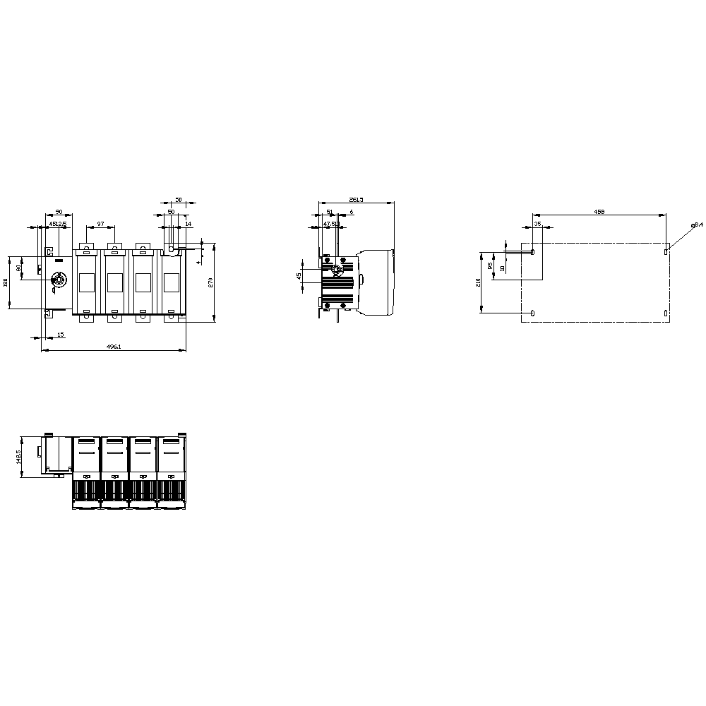 SIEMENS - Sezionatore sottocarico con fusibile 800 A, grand. costr. 5, a 4 poli per fusibile NH grand. 2 3KF54804LF11