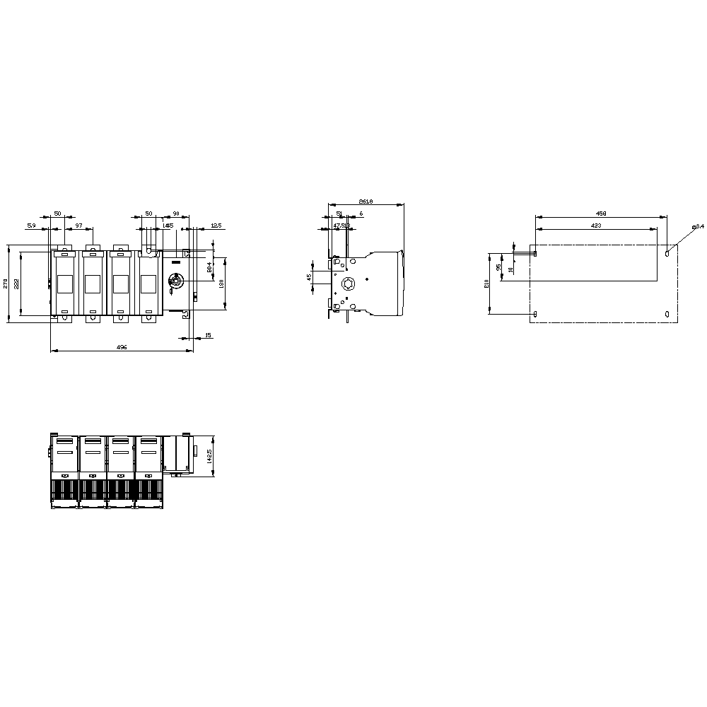 SIEMENS - Sezionatore sottocarico con fusibile 800 A, grand. costr. 5, a 4 poli per fusibile NH grand. 2 3KF54804RF11