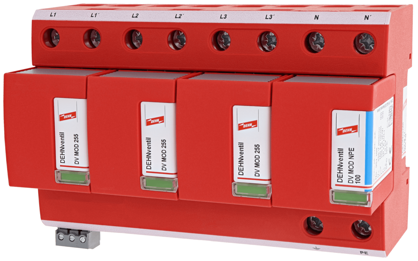 DEHN - Scaricatore combinato DEHNventil Tipo 1+2 per reti trifase TT e TNS con FM SPD T1+2 3P+N A CARTUCCIA CON CONTATTO. 951315