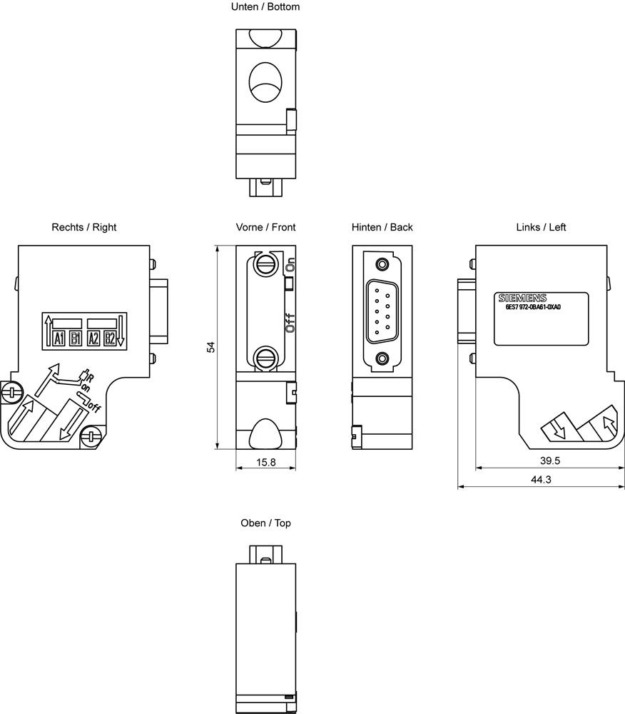 SIEMENS - SIMATIC DP Connettore PROFIBUS RS 485, FastConnect, senza presa PG, 35° 6ES79720BA610XA0