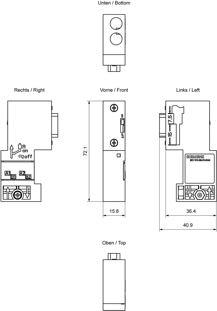 SIEMENS - SIMATIC DP Connettore PROFIBUS RS 485, FastConnect, senza presa PG, 90° 6ES79720BA700XA0