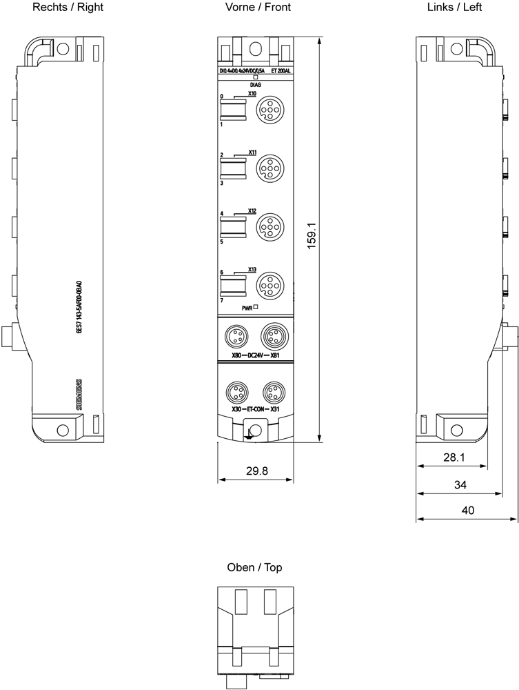 SIEMENS - SIMATIC ET 200AL DIQ 4+DQ 4 x DC 24 V/0,5 A 4 x M12 6ES71435AF000BA0