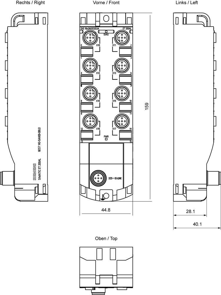 SIEMENS - SIMATIC ET 200AL IO-Link DIQ 16x24 VDC/0,5A 8 x M12