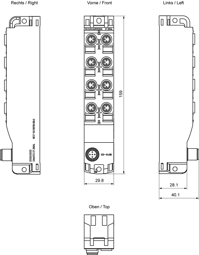 SIEMENS - SIMATIC ET 200AL IO-Link DIQ 4+DQ 4x24 VDC/0,5A 8 x M8 6ES71435BF000BL0