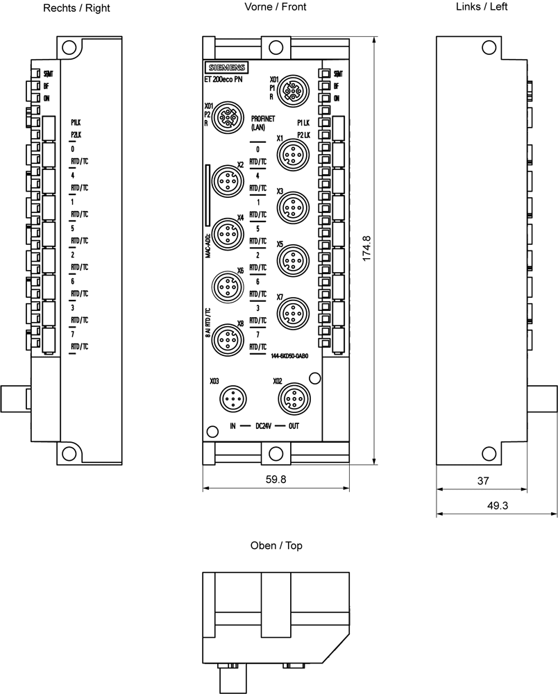 SIEMENS - SIMATIC ET 200eco PN 8AI RTD/TC 8 x M12