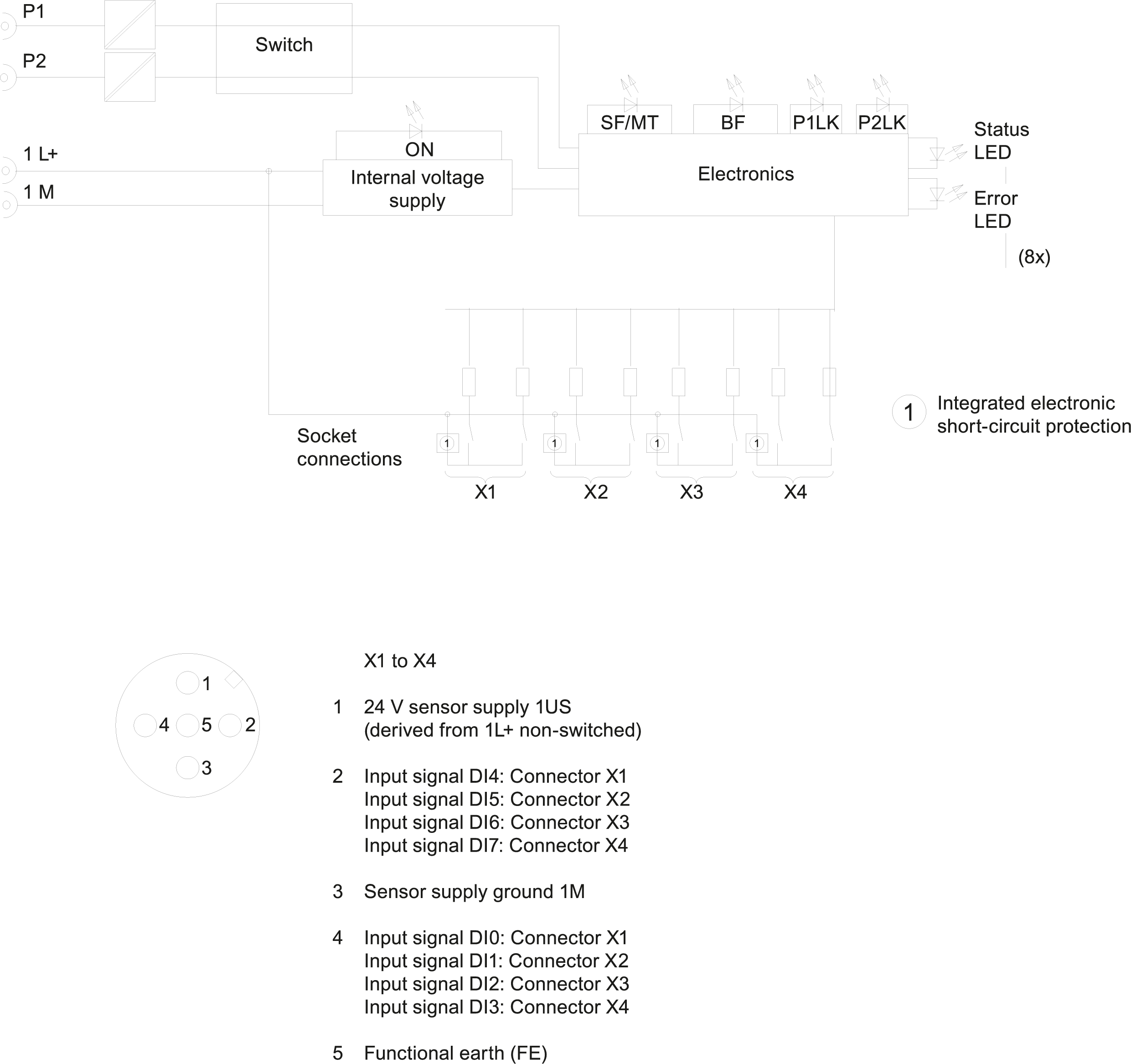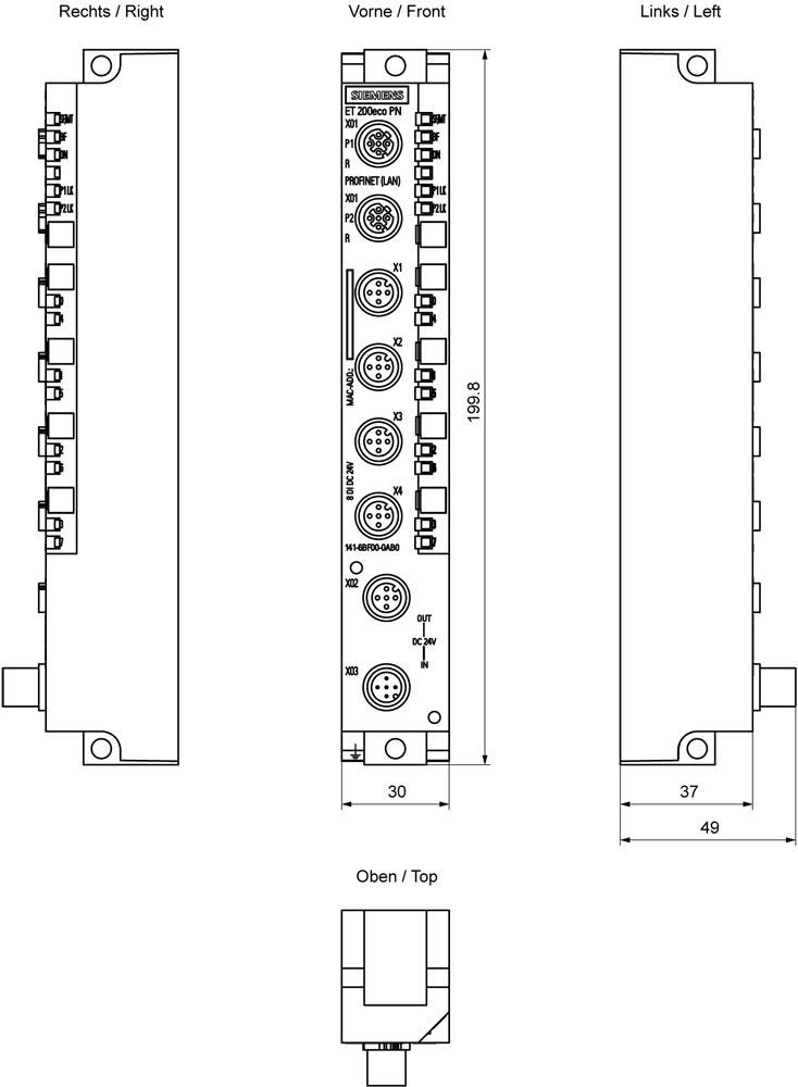 SIEMENS - SIMATIC ET 200eco PN 8DI DC 24 V 4 x M12