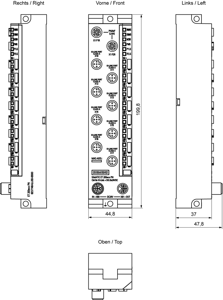 SIEMENS - SIMATIC ET 200eco PN CM 8xIO-Link + DQ 8x24 V DC/0,5 A 8 x M12 6ES71486JJ000BB0