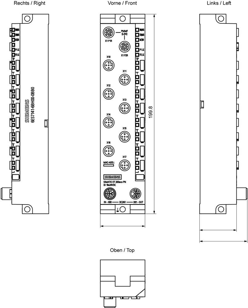 SIEMENS - SIMATIC ET 200eco PN DI 16x24VDC, M12-L 8 x M12 6ES71416BH000BB0