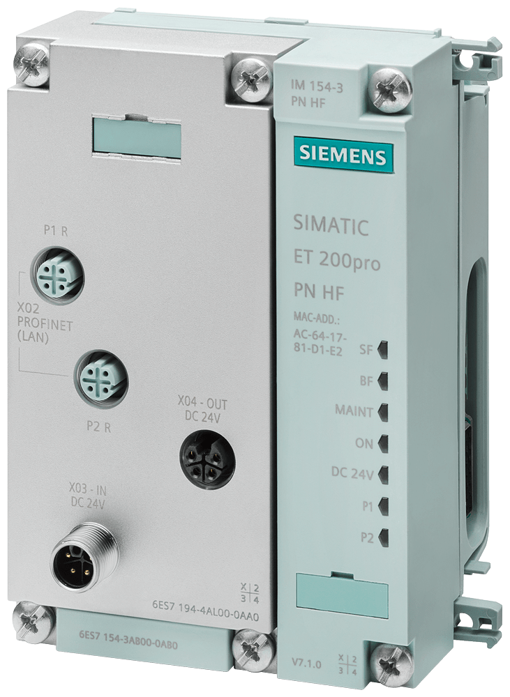 SIMATIC DP, modulo di connessione per modulo di interfaccia PROFINET ET 200 PRO IM154-3 PN HF, M12 M12-L S , 2x M12-D e 2x M12-L SIMATIC ET 200pro è un sistema di periferia modulare, robusto e versatile con grado di protezione IP65/67, che si contraddistingue per la sua ampia gamma di moduli. Siemens vi offre così la possibilità di una soluzione applicativa salvaspazio e multifunzionale che, grazie alla sua struttura modulare, può essere installata direttamente sulla macchina e non necessita di quadro elettrico. Potete reagire con flessibilità e rapidità ai diversi requisiti di automazione, poiché il sistema di periferia comprende una gamma di moduli ampia e innovativa. Oltre alla versatilità dei moduli, il sistema consente di risparmiare spazio ed è facile da montare grazie alla sua struttura. Inoltre, è possibile limitare al minimo i tempi di fermo dell'impianto, impiegando le numerose ed efficaci opzioni di diagnostica che SIMATIC ET 200pro offre con i suoi moduli High Feature. La funzione Hot Swapping consente di sostituire i moduli di elettronica in caso di guasto senza disinserzione dell'impianto. Durante la sostituzione dei moduli, il cablaggio viene mantenuto e i restanti componenti dell'impianto continuano a funzionare. Siemens vi offre una soluzione completa di alta qualità e impiegabile con flessibilità, che può essere utilizzata anche con carichi meccanici elevati grazie all'esecuzione robusta. La gestione continua della qualità contribuisce al successo dei prodotti ET 200, che fissano nuovi standard di mercato e rendono Siemens un partner affidabile. Il sistema offre una portfolio assai ampio di moduli. Oltre a diversi moduli di ingressi e uscite digitali e analogici nei più svariati tipi di esecuzione, è disponibile anche una serie di moduli fail-safe per l'impiego fino a SIL 3 / PLe. Specialmente per il comando di motori il sistema ET 200pro offre soluzioni integrate in forma di avviatori motore e convertitori di frequenza, eventualmente disponibili come varianti fail-safe. Un master IO-Link e un modulo per il collegamento di componenti e apparecchiature RFID tramite l'interfaccia RS 232 / 422 completano il portfolio.