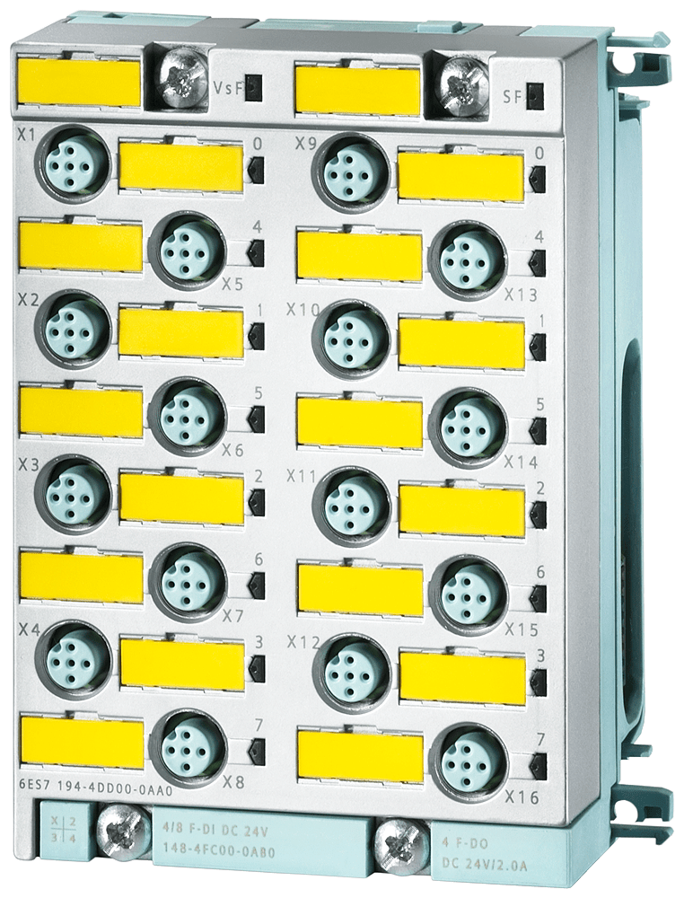 SIMATIC DP, ET 200 PRO modulo di connessione per modulo elettronico fail-safe 8/16 F-DI DC 24V SIMATIC ET 200pro è un sistema di periferia modulare, robusto e versatile con grado di protezione IP65/67, che si contraddistingue per la sua ampia gamma di moduli. Siemens vi offre così la possibilità di una soluzione applicativa salvaspazio e multifunzionale che, grazie alla sua struttura modulare, può essere installata direttamente sulla macchina e non necessita di quadro elettrico. Potete reagire con flessibilità e rapidità ai diversi requisiti di automazione, poiché il sistema di periferia comprende una gamma di moduli ampia e innovativa. Oltre alla versatilità dei moduli, il sistema consente di risparmiare spazio ed è facile da montare grazie alla sua struttura. Inoltre, è possibile limitare al minimo i tempi di fermo dell'impianto, impiegando le numerose ed efficaci opzioni di diagnostica che SIMATIC ET 200pro offre con i suoi moduli High Feature. La funzione Hot Swapping consente di sostituire i moduli di elettronica in caso di guasto senza disinserzione dell'impianto. Durante la sostituzione dei moduli, il cablaggio viene mantenuto e i restanti componenti dell'impianto continuano a funzionare. Siemens vi offre una soluzione completa di alta qualità e impiegabile con flessibilità, che può essere utilizzata anche con carichi meccanici elevati grazie all'esecuzione robusta. La gestione continua della qualità contribuisce al successo dei prodotti ET 200, che fissano nuovi standard di mercato e rendono Siemens un partner affidabile. Il sistema offre una portfolio assai ampio di moduli. Oltre a diversi moduli di ingressi e uscite digitali e analogici nei più svariati tipi di esecuzione, è disponibile anche una serie di moduli fail-safe per l'impiego fino a SIL 3 / PLe. Specialmente per il comando di motori il sistema ET 200pro offre soluzioni integrate in forma di avviatori motore e convertitori di frequenza, eventualmente disponibili come varianti fail-safe. Un master IO-Link e un modulo per il collegamento di componenti e apparecchiature RFID tramite l'interfaccia RS 232 / 422 completano il portfolio.