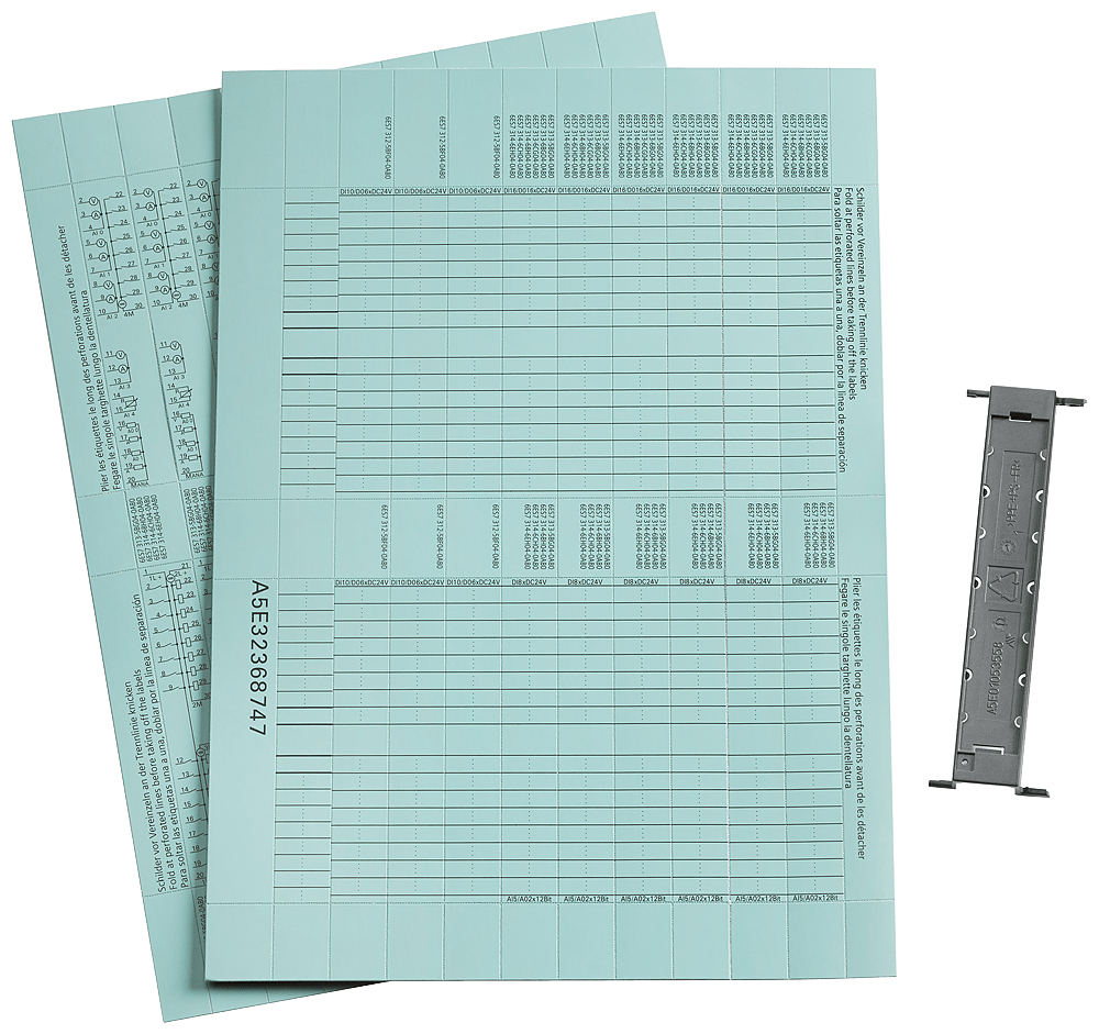 *** pezzo di ricambio *** 10 fogli di etichette di siglatura DIN A4 colore: giallo 60 fogli di etichette di siglatura per moduli di periferia e 20 fogli di etichette di siglatura per modulo d'interfaccia materiale: pellicola, preforata per la stampa con stampante laser oppure plotter 10 fogli per unità d'imballo SIMATIC ET 200S è un sistema di periferia decentrata modulare e scalabile, che è concepito specialmente per l'installazione in piccole cassette di distribuzione a livello di macchina. I moduli possono essere inseriti direttamente su una unità ET 200S IM con funzionalità di CPU oppure collegati tramite PROFINET o PROFIBUS ad un controllore centrale. SIMATIC ET 200S può essere ampliato con fino a 64 moduli di periferia, che possono essere inseriti in qualsiasi combinazione. Il sistema offre un'ampia gamma diunità. Molti moduli sono inoltre disponibili con diversi livelli di prestazioni, il che migliora notevolmente la scalabilità riguardo a funzionalità e prezzo. Oltre ai moduli con funzionalità standard (ST) sono infatti disponibili anche moduli con insieme di funzioni ampliato e diagnostica (HF High Feature / HS High Speed). Il vantaggio del sistema ET 200S consiste nella facilità d'impiego, ad es. grazie alla possibilità di eseguire la sostituzione di moduli e box morsetti durante l'esercizio. Grazie al cosiddetto "Hot Swapping" risultano notevolmente aumentate la disponibilità e la produttività della macchina. Accessori per SIMATIC ET 200S