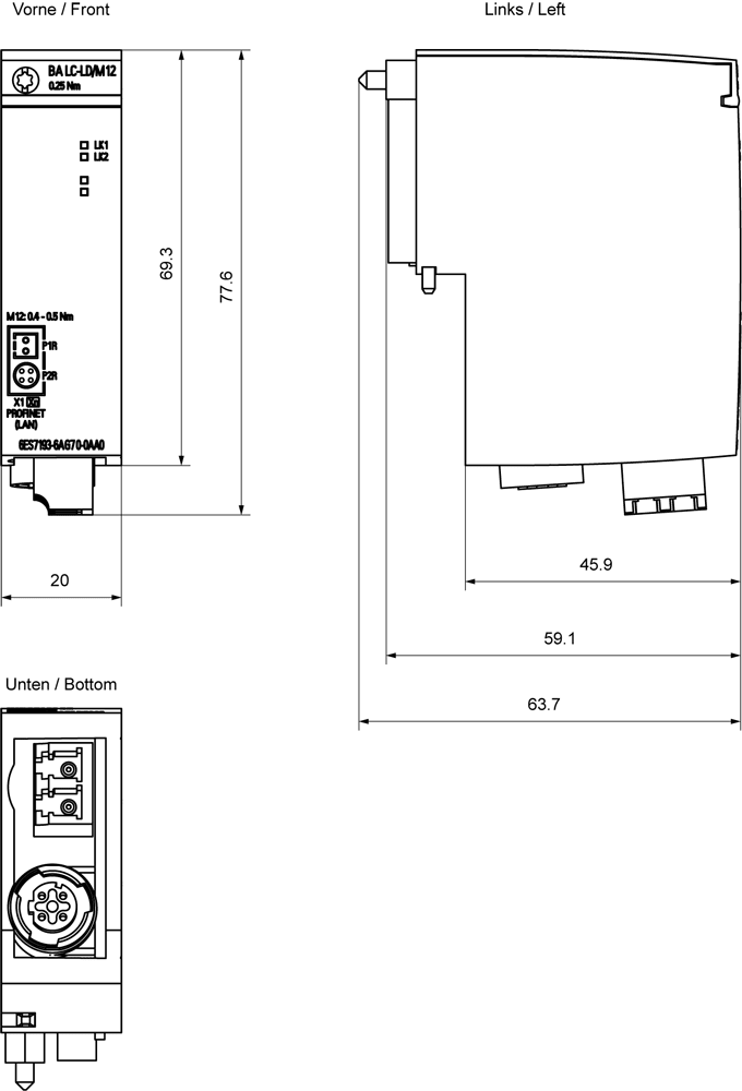 SIEMENS - SIMATIC ET 200SP BA LC-LD / M12