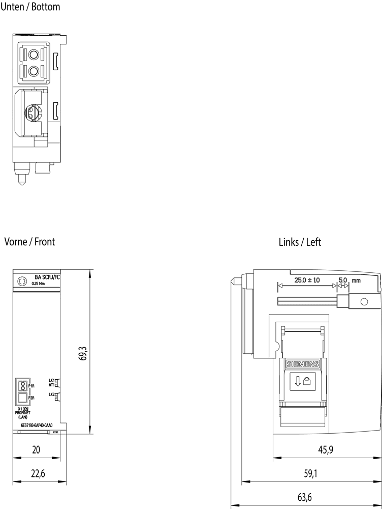 SIEMENS - SIMATIC ET 200SP BA SCRJ/FC 6ES71936AP400AA0