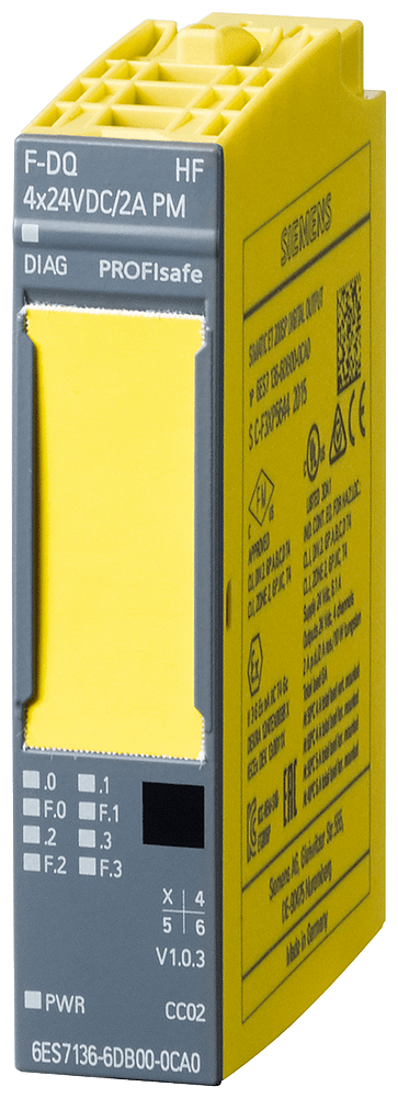 SIMATIC DP, modulo di elettronica per ET 200SP, F-DQ 4x24VDC/2A, Larghezza costruttiva 15mm, fino a PL E (ISO 13849) fino a SIL 3 (IEC 61508) Con il SIMATIC ET 200SP, Siemens offre un sistema di periferia decentrata e multifunzionale che può essere facilmente messo in servizio grazie alla sua forma costruttiva salvaspazio. È omologato per il grado di protezione IP20 e progettato per l'installazione in una cassetta di distribuzione compatta. Il sistema assicura la massima flessibilità, consentendo di sostituire in ogni momento rapidamente e facilmente i moduli grazie al Multi Hot Swapping. Inoltre il SIMATIC ET 200SP vi offre una vasta gamma di canali di comunicazione, sia diversi che veloci. Grazie all'integrazione del modulo di interfaccia MultiFieldbus IM155-6MF, potete sempre reagire con flessibilità e utilizzare il protocollo ottimale per la vostra applicazione, poiché questa funzione supporta diversi protocolli Ethernet. Il montaggio e il service sono semplificati da un sistema di identificazione unitario, basato su targhette identificative di riferimento e sull'assegnazione dei pin con codifica a colori. Siemens vi assicura sistemi a prova di futuro con l'integrazione di prodotti di automazione innovativi e allo stesso tempo di lunga durata, infatti in qualità di esperti di settore investite già oggi nelle tecnologie di domani e ridefinite così gli standard di mercato. La continua disponibilità dei dati, la flessibilità dei casi applicativi e le versatili opzioni di integrazione assicurano le ottime prestazioni dei prodotti ET 200. La configurazione scalabile e ottimizzata a livello di costi di una stazione ET 200SP è garantita dall'ampia gamma di moduli I/O. Oltre alle unità di ingressi e uscite digitali e analogiche sono disponibili anche varianti fail-safe per applicazioni fino a SIL 3 / PLe. Ciò vale pure per gli avviatori motore integrati, che sono adatti per motori fino a 5,5 kW. Contatori di energia per la misura e l'analisi del consumo energetico, master IO-Link (V1.1.) nonché molti altri moduli di comunicazione e tecnologici permettono di adattare il sistema ad ogni compito di automazione. Gli accessori disponibili per ET 200SP vanno dalle targhette identificative di riferimento a colori e non a colori fino alle etichette di siglatura per i singoli moduli e assicurano la massima visibilità nel quadro elettrico.