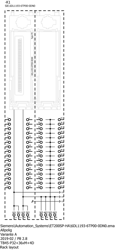 SIMATIC ET 200SP HA, blocco morsetti, tipo N0, 64 morsetti push-in, nuovo gruppo di carico, larghezza: 45mm